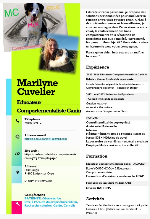 Rencontrez Marilyne, votre éducateur canin comportementaliste proche de Savigny Sur Orge 91