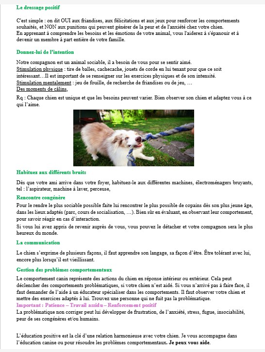 Les tarifs seront les mêmes que pour l’éducation de base & comportement (paiement par virement)
